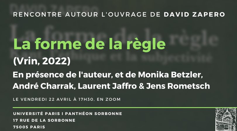 Discussion autour du livre "La forme de la règle", de David Zapero