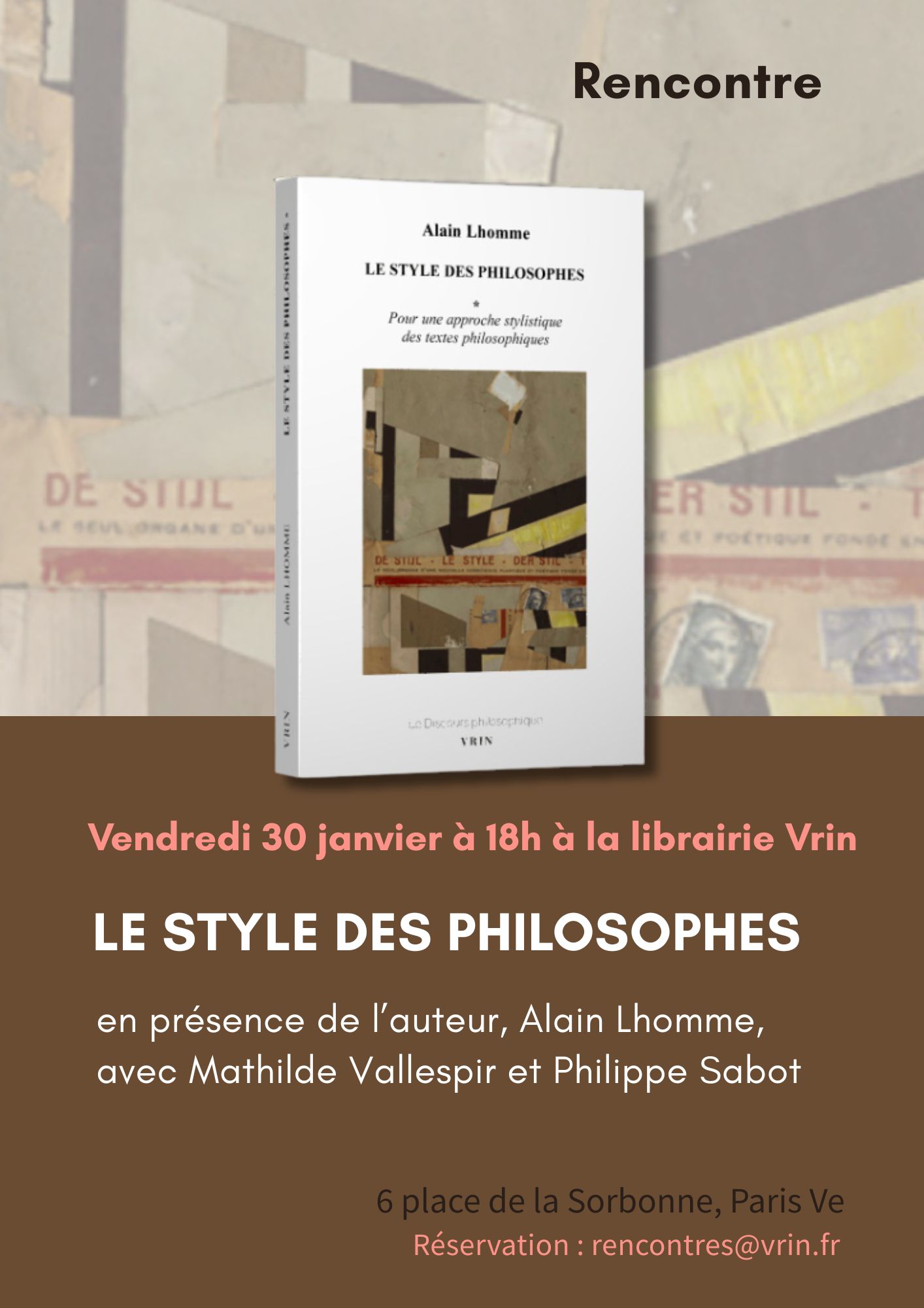 Alain Lhomme est professeur honoraire de philosophie, chercheur au laboratoire Savoirs Textes Langages de l’Université de Lille. Il est l'auteur aux éditions Vrin de l'ouvrage Le style des philosophes. Pour une approche stylistique des textes philosophiques qu'il présentera en librairie vendredi 30 janvier 2026 à 18h, aux côtés de Mathilde Vallespir et Philippe Sabot.